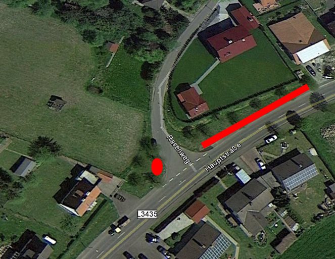 • An den Ortseingängen in Elfershausen ein Streifen von 30 Meter Länge und 1,5 Meter Breite