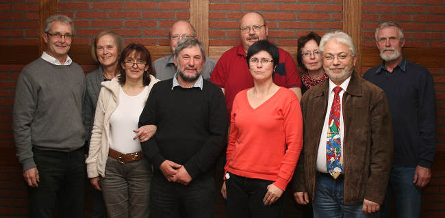 (von links nach rechts): Edgar und Ilona Janassek, Gerda Hörold (Kassenprüferin), Bernd Grünhaupt, Lothar Kothe, Rolf Götzmann, Isolde Schewitz, Clarissa Beisecker, Winfried Hucke, Dr. Johannes Heyn |